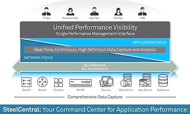 Verbesserte Zusammenarbeit in der IT sowie End-to-End-Fehlerbehebung sind für Unternehmen besonders wichtig. Für sie hängt die Business Performance von der Anwendungs-Performance ab. Die Komplexität von Anwendungen – mit SaaS, Cloud, hybriden Netzwerken und Endnutzermobilität – ist für herkömmliche, Domain-zentrierte Werkzeuge nicht mehr zu lösen. Riverbed SteelCentral wählt für das Management der Anwendungs-Performance einen neuen Ansatz: die Lösung erfasst und analysiert Performance-Daten über alle Netzwerke und Anwendungen hinweg, während zudem das Endnutzererlebnis kontinuierlich überwacht wird.